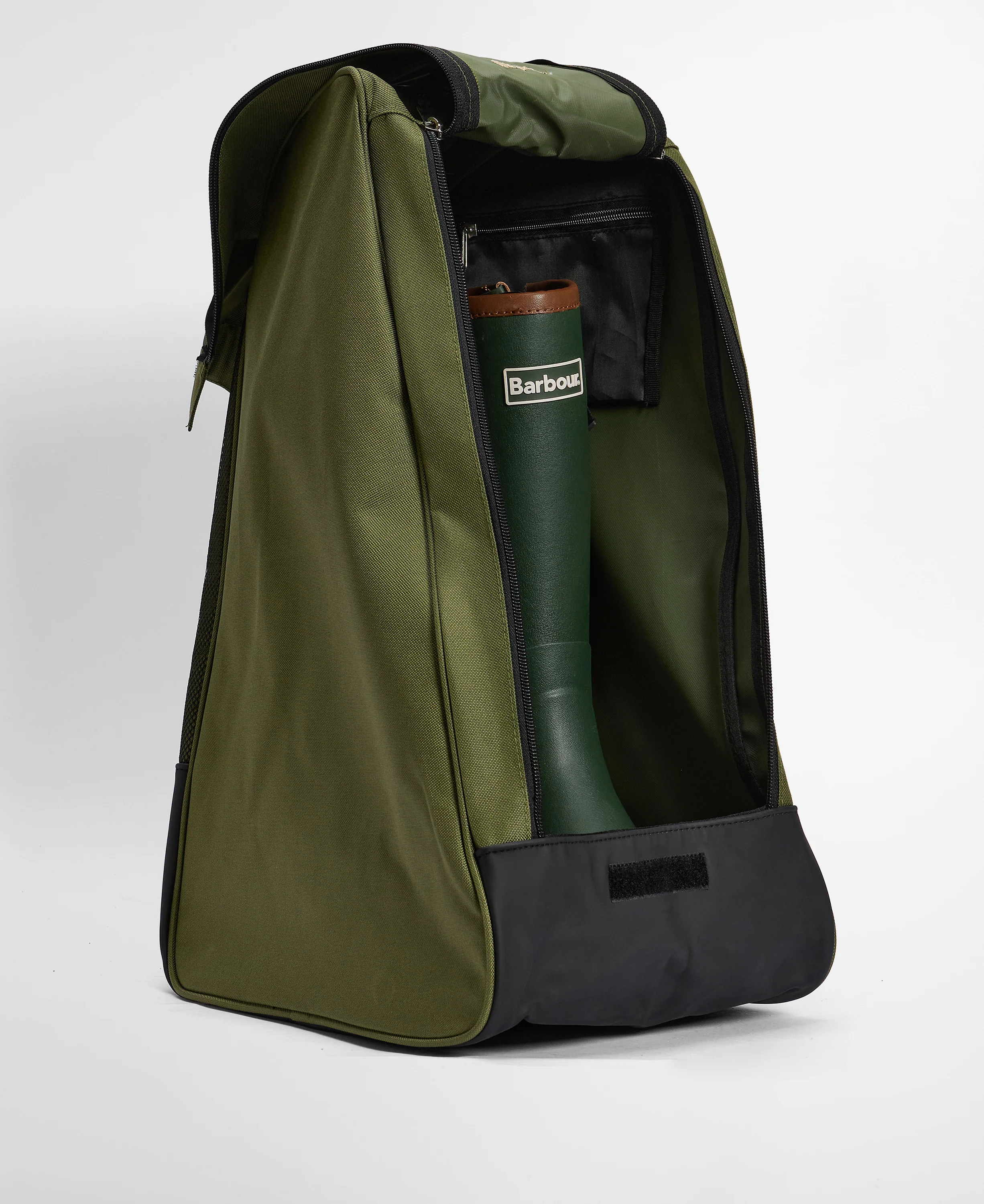 The Barbour Wellington Bag is a tough Nylon exterior, PVC bottom with feet, rear mesh pocket, parallel zip closure, internal zip pocket, carry handle and shoulder strap. Keep the mud on your boots not in the car!
