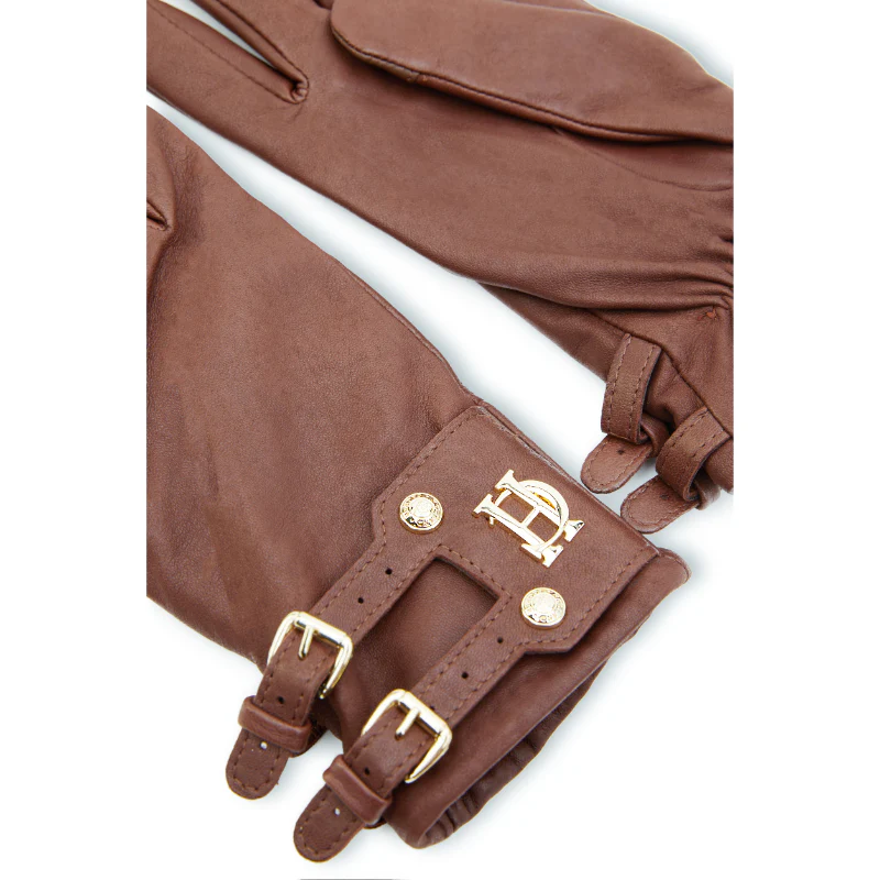 Holland Cooper Monogram Leather Ladies Wool Cashmere Lined Gloves - Tan