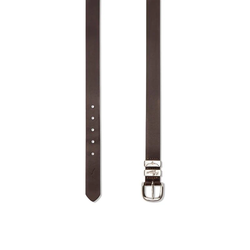 The R.M. Williams 1 1/4 Drover Unisex Belt is a quality, solid hide leather belt. Made in Australia and complete with a three piece logo buckle set in antique nickel.